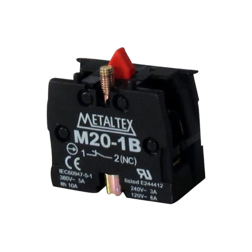 Aumente a flexibilidade dos seus circuitos de comando com o Bloco de Contato Auxiliar M20-1B da Metaltex. Este componente essencial oferece 1 contato normalmente fechado (NF), permitindo a implementação de funções de controle e sinalização específicas em seus sistemas elétricos. Uma solução prática para otimizar o comando dos seus equipamentos industriais.