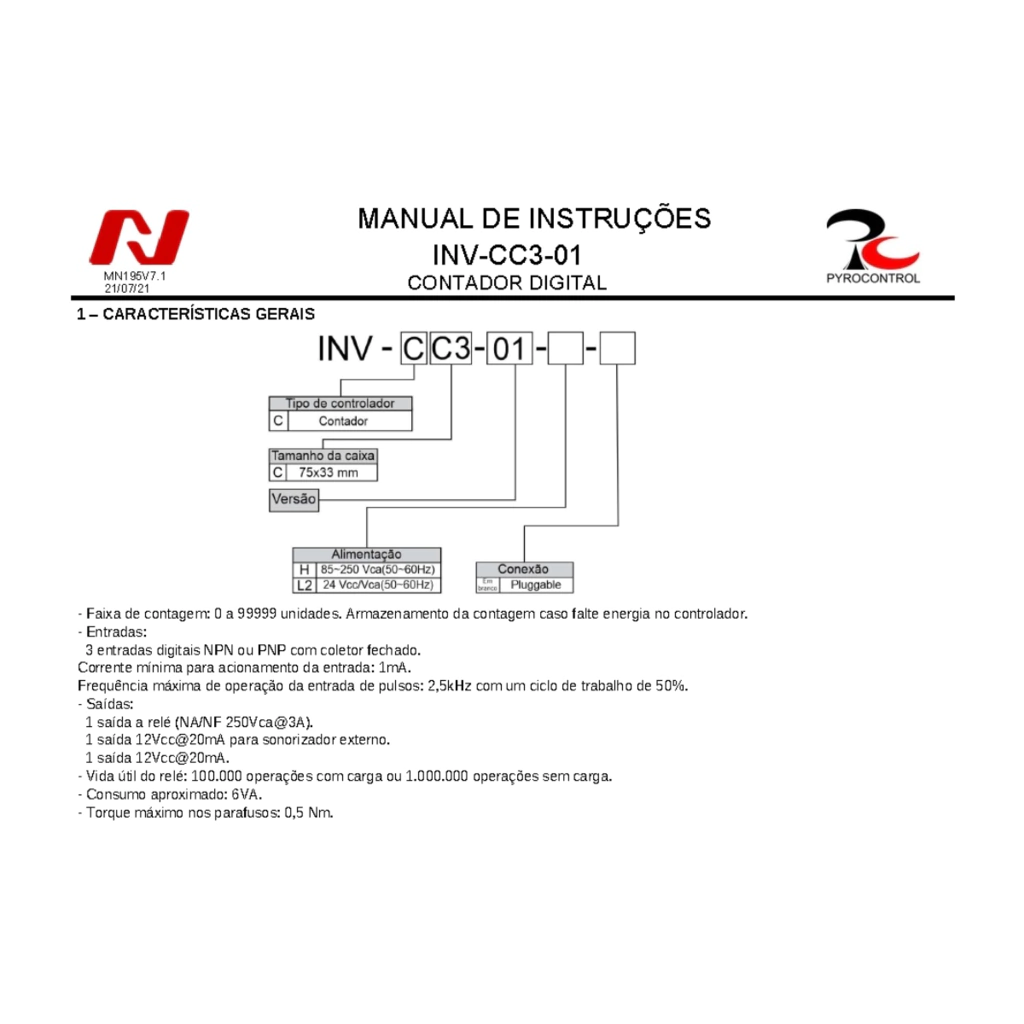 Sua construção robusta e suas múltiplas entradas e saídas tornam este produto uma escolha versátil para diferentes ambientes industriais. Invista em tecnologia de ponta e eficiência com o CONTADOR INV-CC!