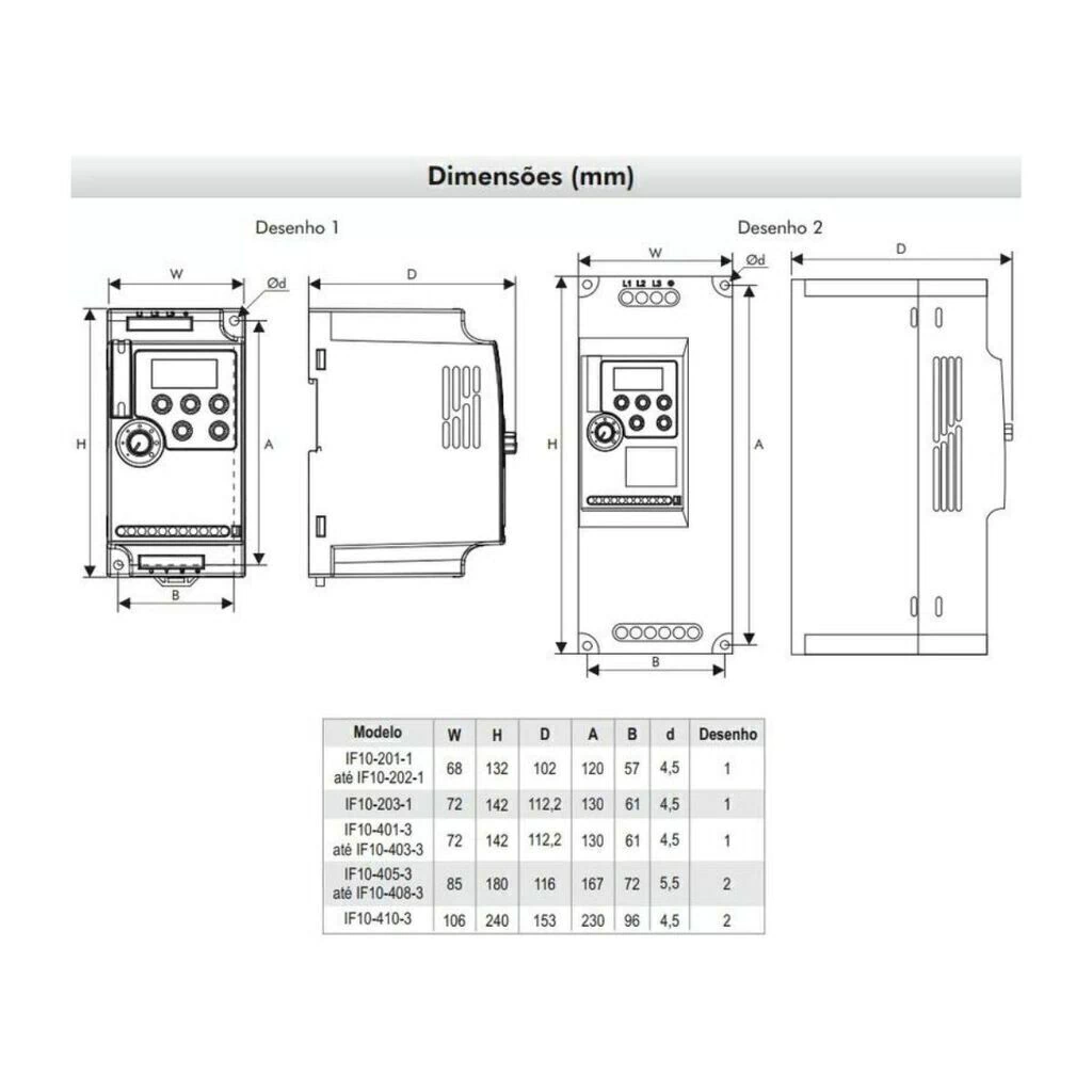 Inversor de Frequência Metaltex Monofásico 220V 2CV 1,5kW IF10-202-1 Vetorial
