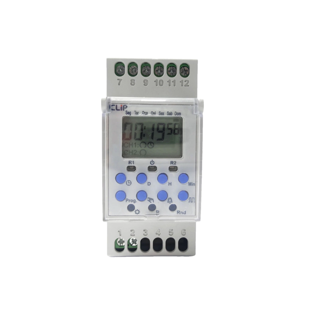 Eleve sua experiência de automação com o Programador Horário CLB-40-2R 100-240V - Clip! Este equipamento é muito mais do que um simples interruptor horário. O CLB-40-2R oferece um nível excepcional de versatilidade e praticidade. Com a capacidade de programar até 2 saídas de forma independente, inclusive com um intervalo mínimo de acionamento de 1 segundo, você pode confiar na precisão das suas configurações, seja para funções de sirene, iluminação ou qualquer outra necessidade.